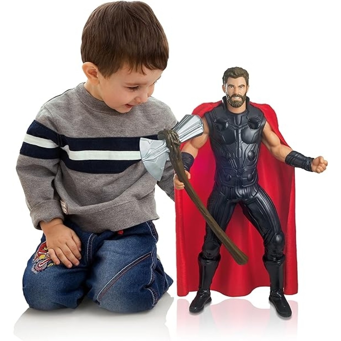 O boneco Thor possui aproximadamente 55 centímetros de altura, perfeito para as crianças reviverem e criarem as cenas dos Vingadores. Ainda acompanha uma linda capa de tecido